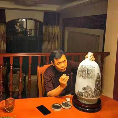 戴钰荣,男,号黟山半闲,安徽黟县人,1965年生。医学世家,精通医学和陶瓷鉴赏。入画界后,创作期间一直得到中国工艺美术大师王锡良和次子王璜教授亲自精心教导,后被王璜教授收为艺徒。作品文雅大气,气势浑厚,擅长山水、花鸟。“贵在精勤”是王锡良大师激励鞭策他走向艺术高峰的座右铭。现为国家一级技师,高级工艺美术师,黄山市陶瓷艺术大师,景德镇王锡良家族五尺园画师。