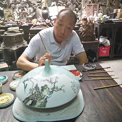 号黟山闲筆,博人一笑。安徽黟县人。1967年生。出生陶瓷世家。祖父胡麟生师从舅父王大凡先生(珠山八友之一)学艺,擅长工笔人物