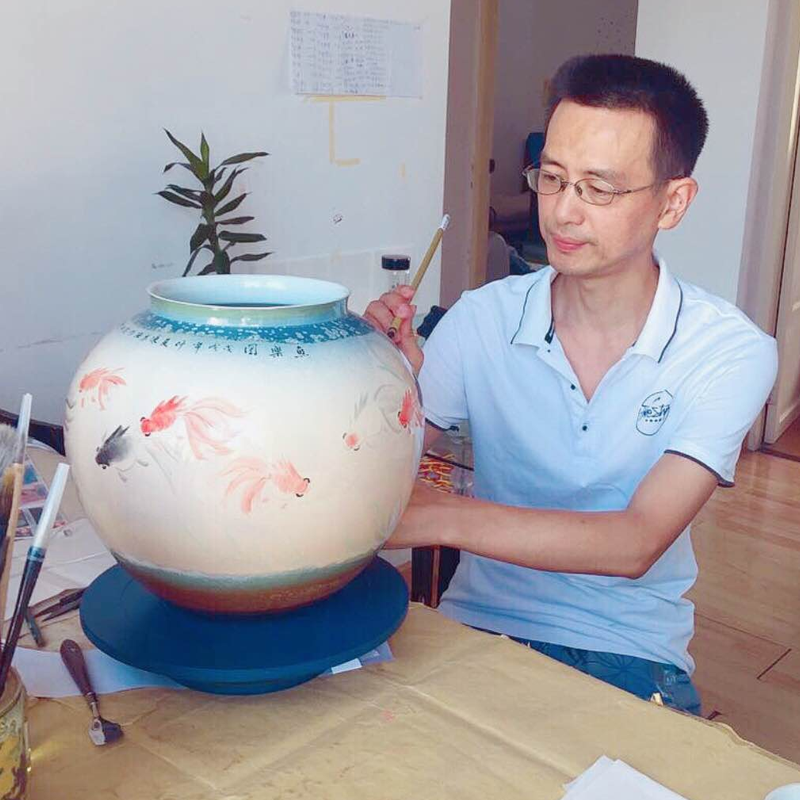 陈志强,又名陈石。1972年生于安徽省黄山市祁门县。从小跟随外祖父马颂良习画。93年入中国书画函授大学北京分校学习。同年拜中国工艺美术大师关宝琮学习陶瓷艺术。95年结业于天津美术学院国画系进修班。师从全国著名画家孙其峰霍春阳.白庚延何家英贾广键李孝萱等.97年调入黄山山华集团(竹林陶园)从事陶瓷美术设计工作。98年国画作品参加新加坡新神洲艺术院举办《醒狮杯中国全国书画精品大赛》获金奖。2000年 创作陶瓷作品<<春趣》、《仕女图》发表在上海人民美术出版社出版的《千年瓷韵》一书。2006年 工笔画作品入选中国艺术研究院艺术评论杂志社出版的《文艺年志》-书。《黄山日报》 对其人其作进行过报道。2018年陶瓷作品《<荷塘清趣》获“徽瓷奖”安徽省第四届陶瓷艺术博览会金奖。《< 河畔》参加第八届安徽省工艺美术精品博览会获银奖。大多数作品被国内外收藏家收藏。现为安徽省传统工艺美术保护和发展促进会会员。黄山市陶瓷艺术大师。黄山市陶瓷协会理事,黄山陈志强传统艺术工作室主任。